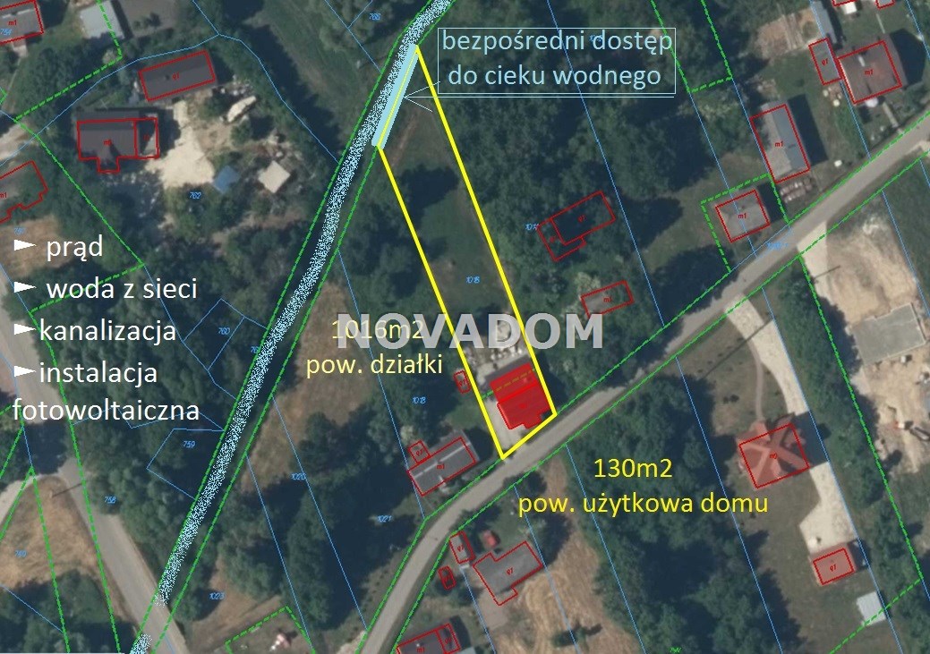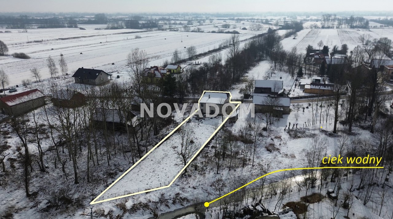 Działka jedną ze stron graniczy z ciekiem wodnym, do którego jest bezpośredni dostęp poprzez furtkę w ogrodzeniu od strony cieku.