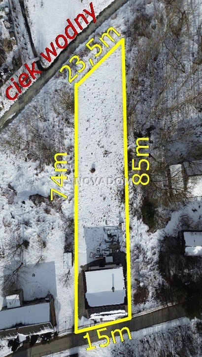 Wymiary działki: ok. 15m - wzdłuż drogi x 74/85m