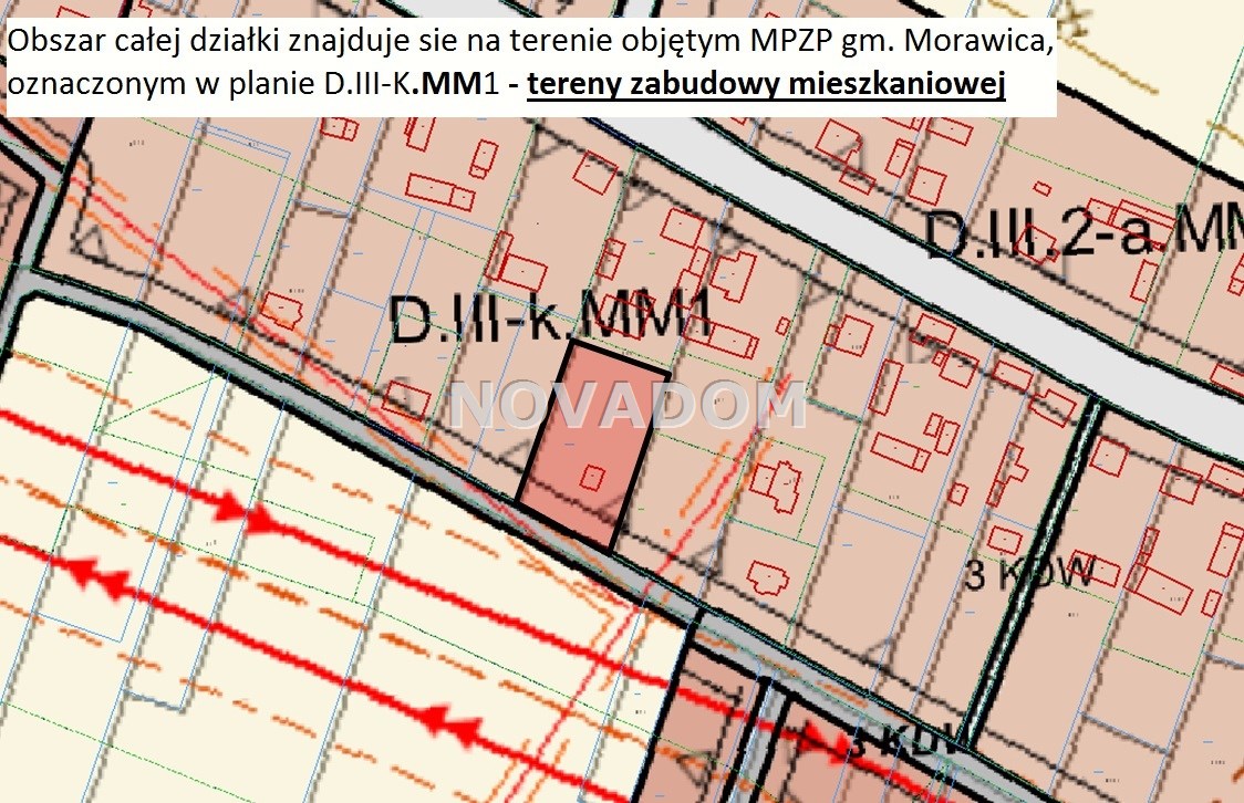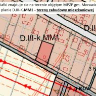 Obszar całej działki znajduje sie na terenie objętym MPZP gm. Morawica, oznaczonym w planie D.III-K.MM1 - tereny zabudowy mieszkaniowej mieszanej (jednorodzinnej i zagrodowej).